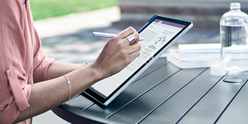 Microsoft Surface Pro 4 steht dank einer Reihe von Faktoren für einen hervorragenden Arbeitskomfort. Dank dem eingebauten Ständer Kickstand kann der Bildschirm in einem beliebigen Winkel aufgestellt und an die individuellen Vorlieben angepasst werden. Der Bildschirm PixelSense kann sowohl durch Berührung bedient werden als auch mithilfe des Surface-Stifts mit 1024 Druckempfindlichkeitsstufen. Damit kann man direkt auf dem Bildschirm schreiben, zeichnen und markieren. Der Radiergummi am Stift löscht oder korrigiert die Notizen mit nur einer Bewegung. Wenn man eine moderne Tastatur Type Cover in bedienungsfreundlicher Größe am Gerät anbringt, verwandelt es sich in einen Laptop. Zusätzlich schützt Type Cover den Bildschirm.